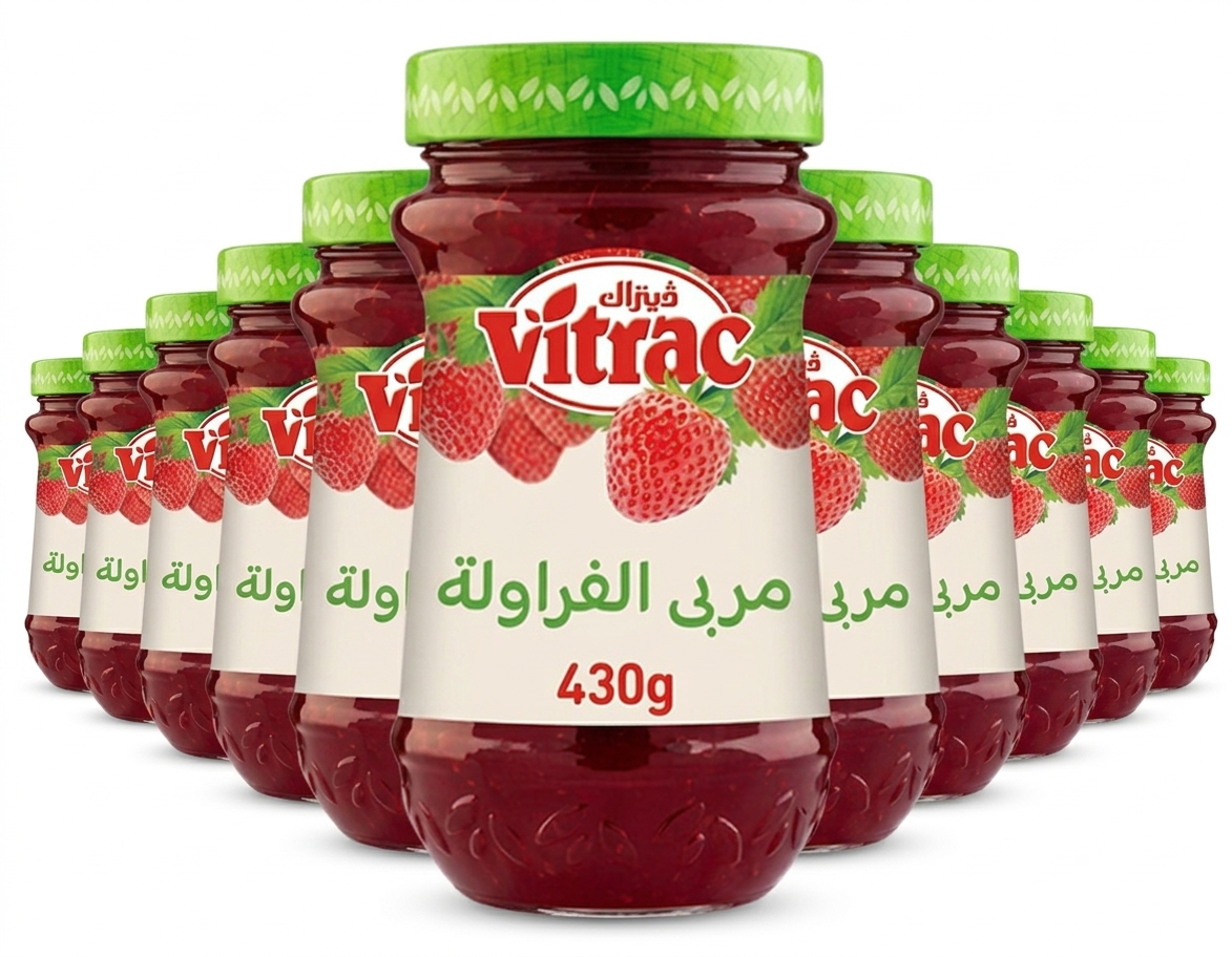 فيتراك مربى فراولة 430 جم هي مربى فاكهة مصنوعة من الفراولة، تتميز بطعم حلو غني وقوام ناعم يسهل فرده واستخدامه.